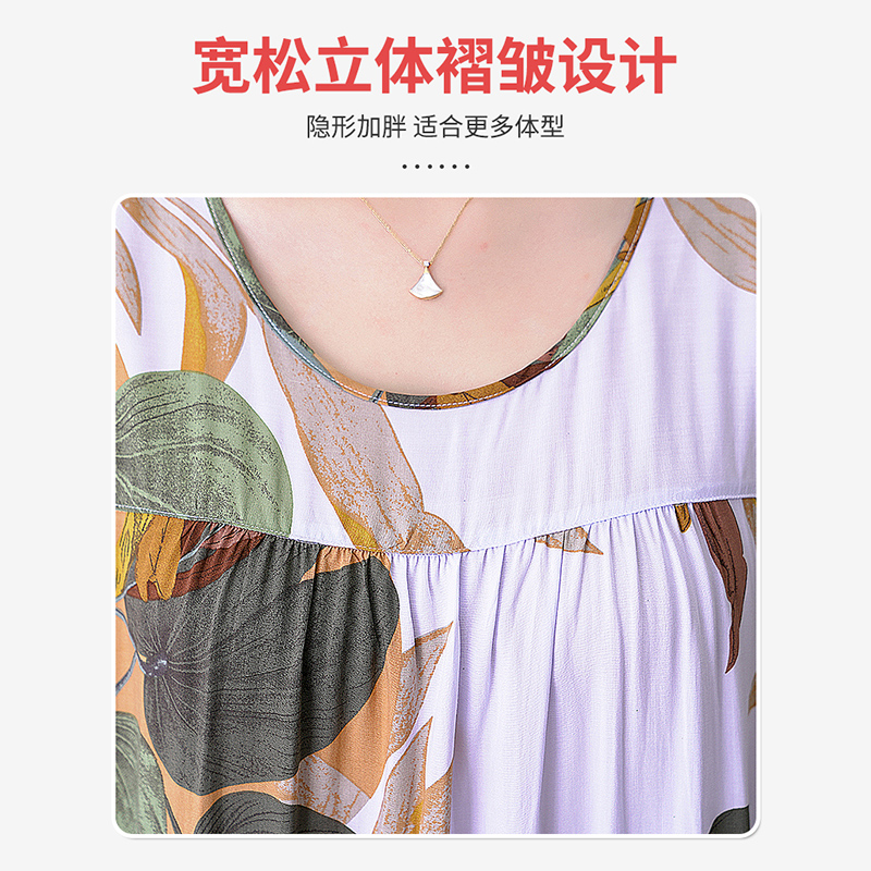 Middle Aged Mom Cotton Silk Sleeping Dress Woman Summer Middle Aged cotton pure cotton Lions dress Loose Big Code Sleepwear summer