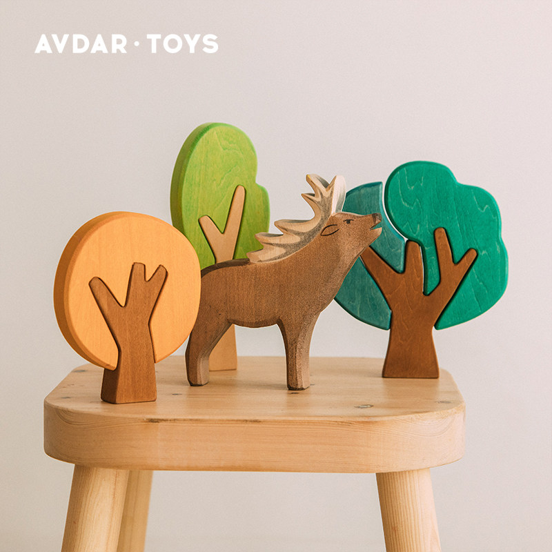 AVDAR three trees imported basswood toys German wood wax oil solid wood building blocks large particles puzzle boys and girls
