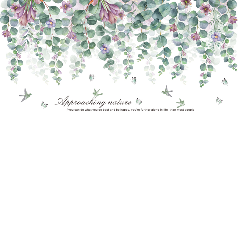 Personality Headboard Wall decoration sticker Bedroom Wall Sticker Wallpaper Room Wallpaper Self-Glued Green Plant Cozy Wall Sticker