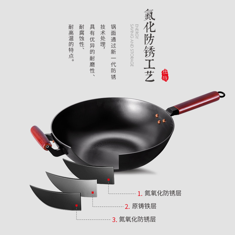 No coating is not easy to rustle and less oil smoke is not easy to stick to pan