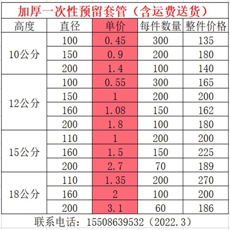 One-time new Shandong mainland drainage PVC pre-buried sleeve sleeve water hole hydropower reserved hole mold