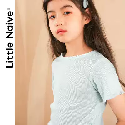 LittleNaive summer 2021 new girls cotton t-shirt top children's solid color thin knitted short-sleeved