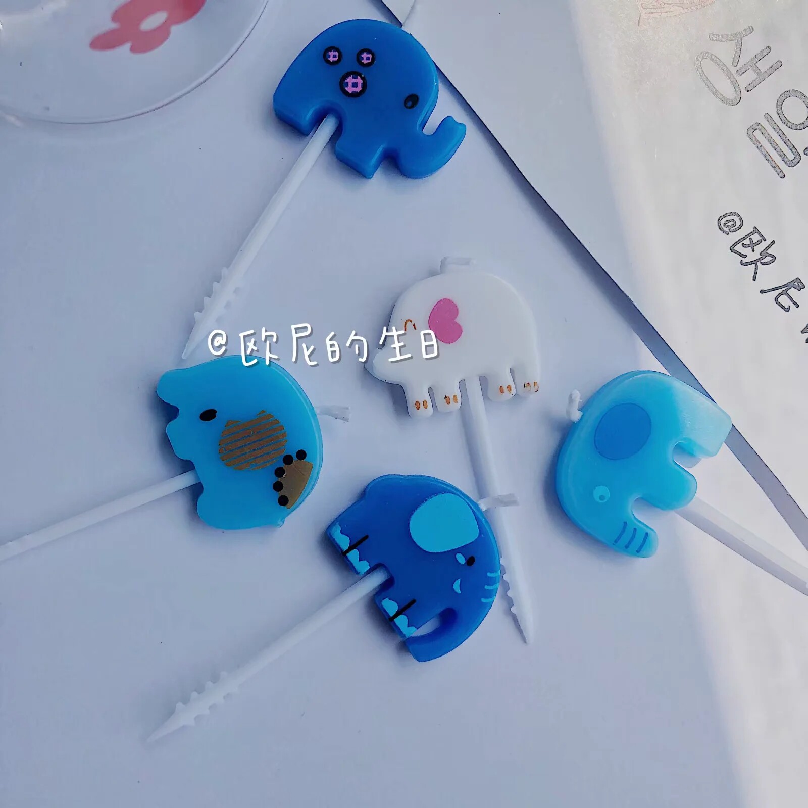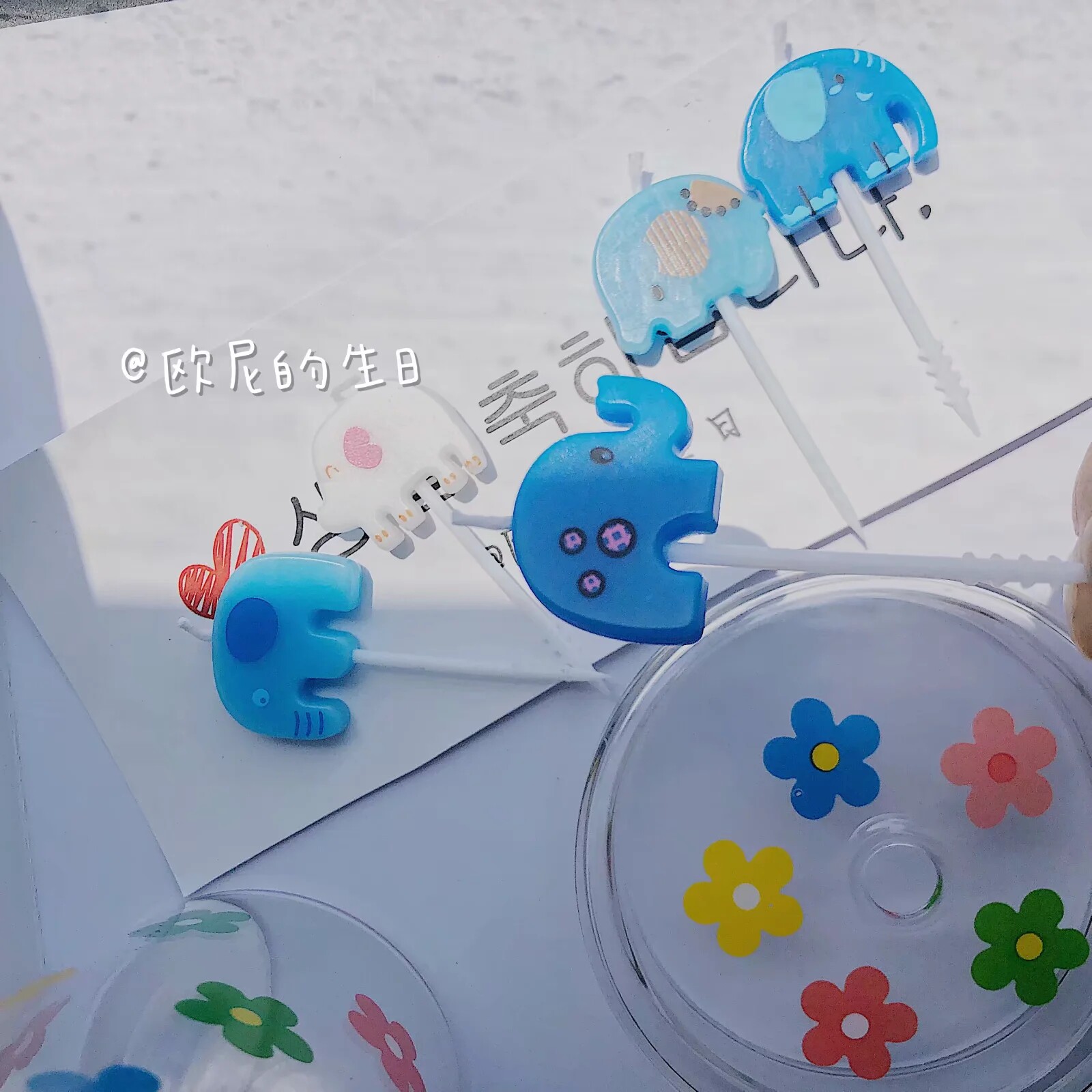 Small fresh blue tone elephant cartoon Korean birthday candle baking cake candle small red book ins recommendation