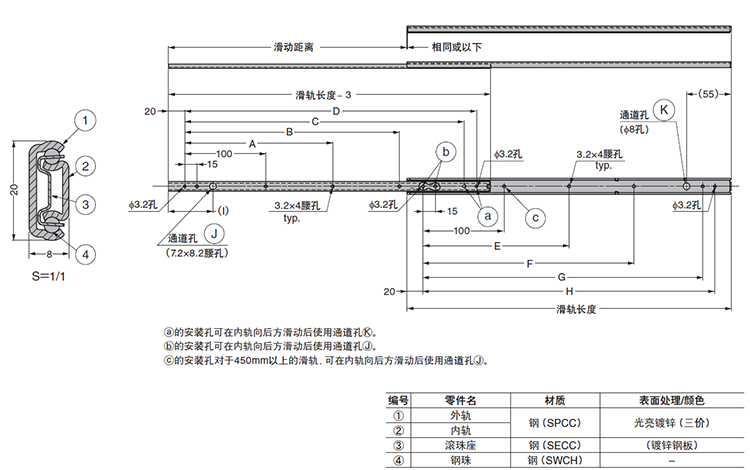 Yagula Accuride two-section steel slide telescopic drawer slide industrial medical equipment rail C2721