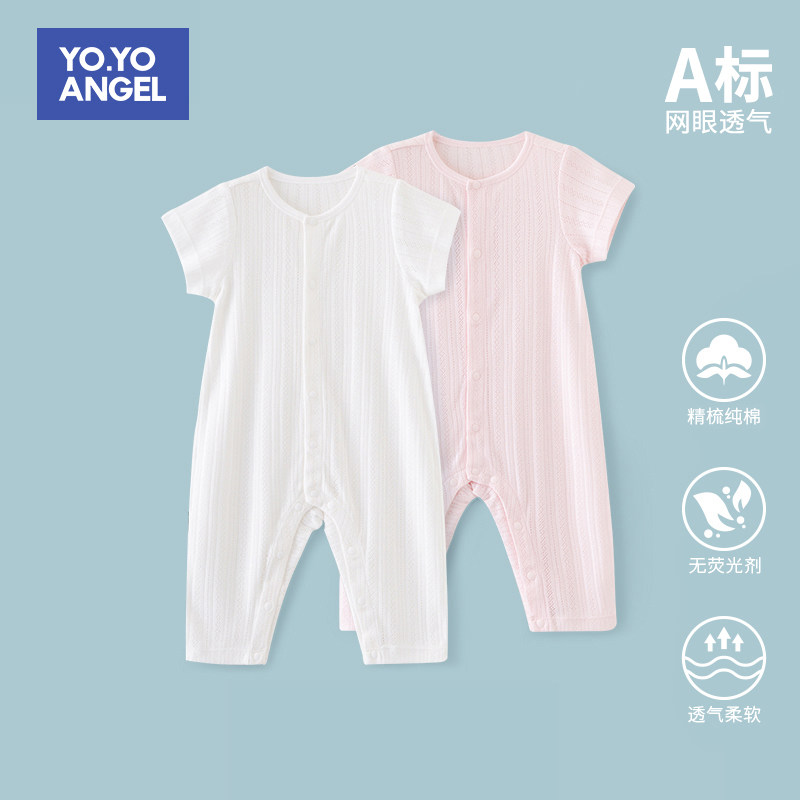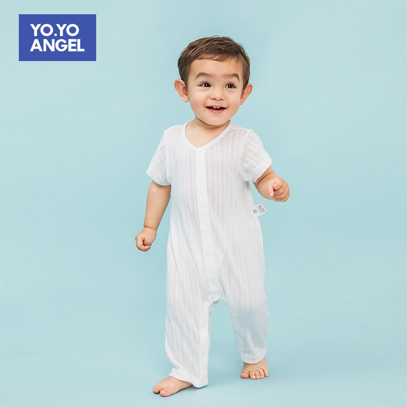Infant jumpsuit, short-sleeved trousers, summer thin cotton pajamas, children's clothing, summer clothing, home air conditioning clothing