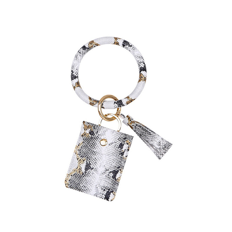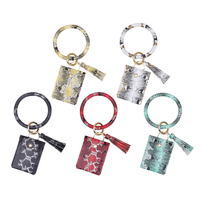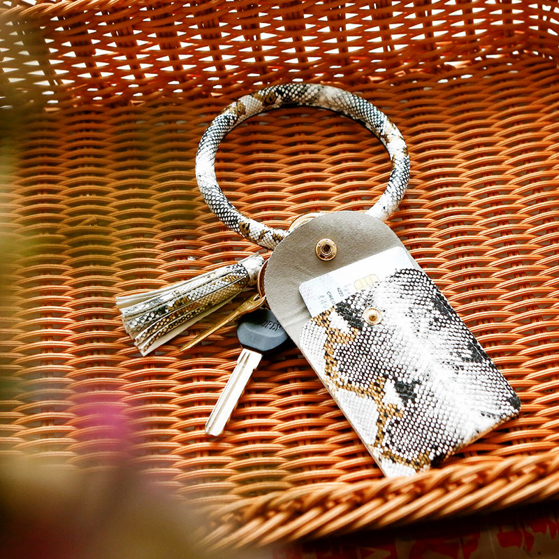 Wild snake pattern pendant girl personality wrist coin card bag European and American pu leather diy multi-functional key ring ring
