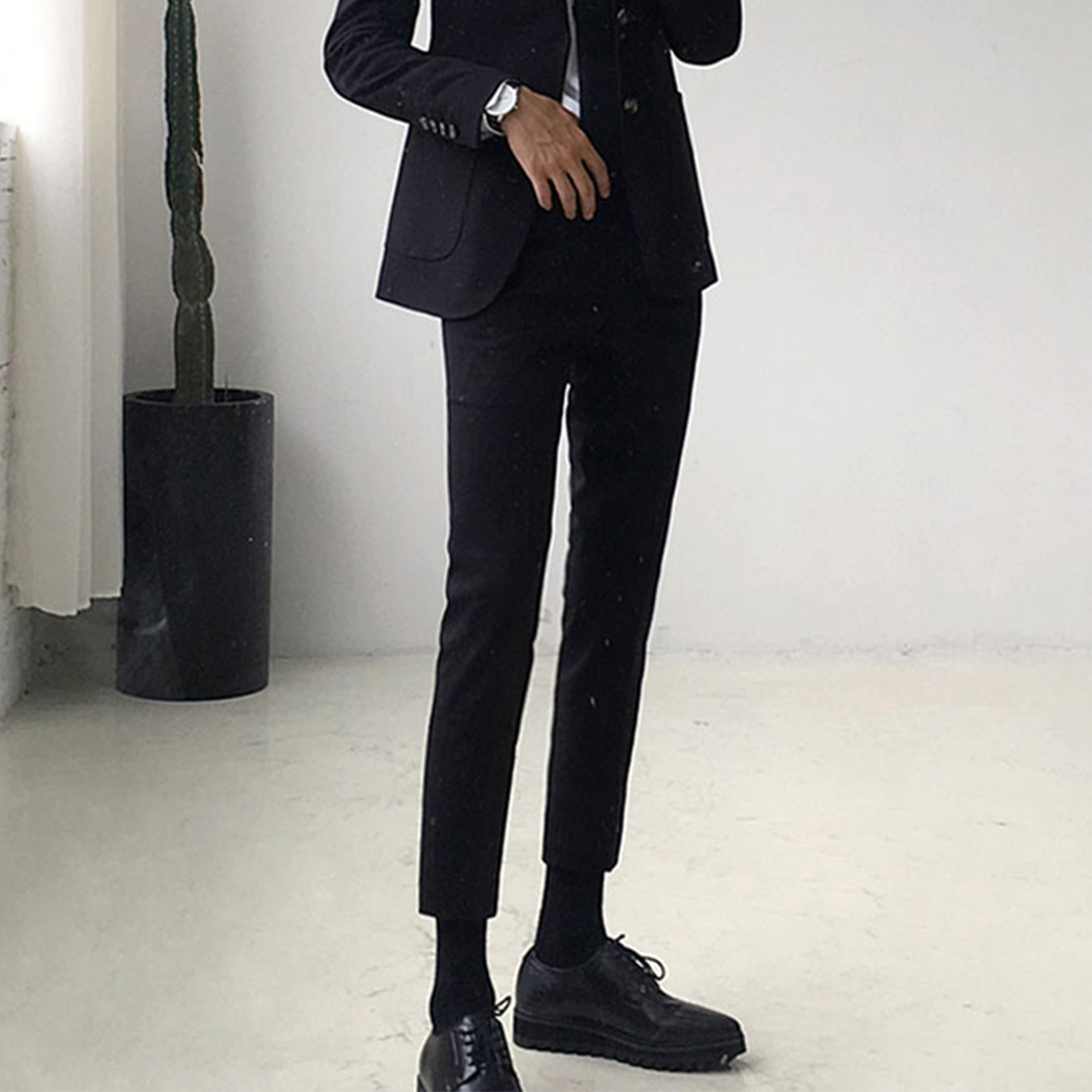 The new Korean solid color drooping pants men Korean version slim feet pants business career leisure British pants trend
