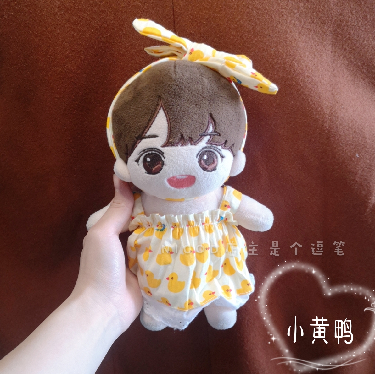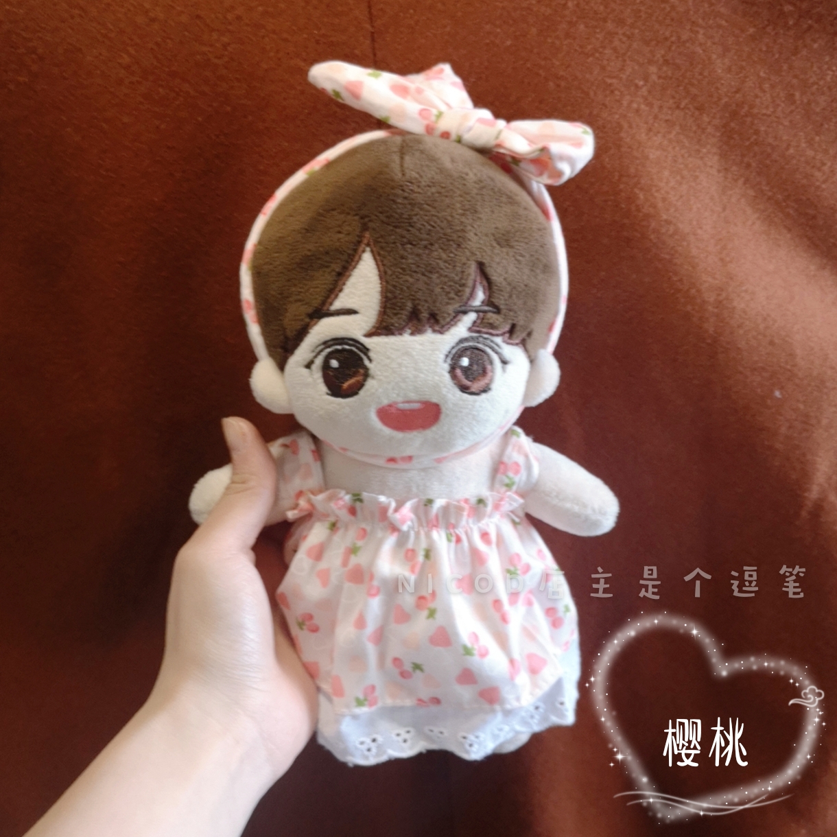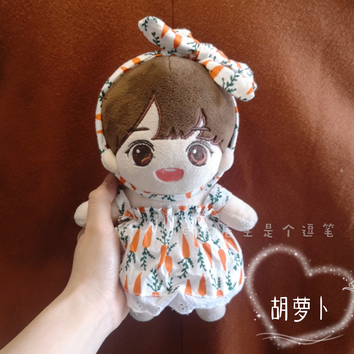 (va used) 20cm doll dresses adorable summer cherry carrots with small yellow duck hair with two sets of children's clothes