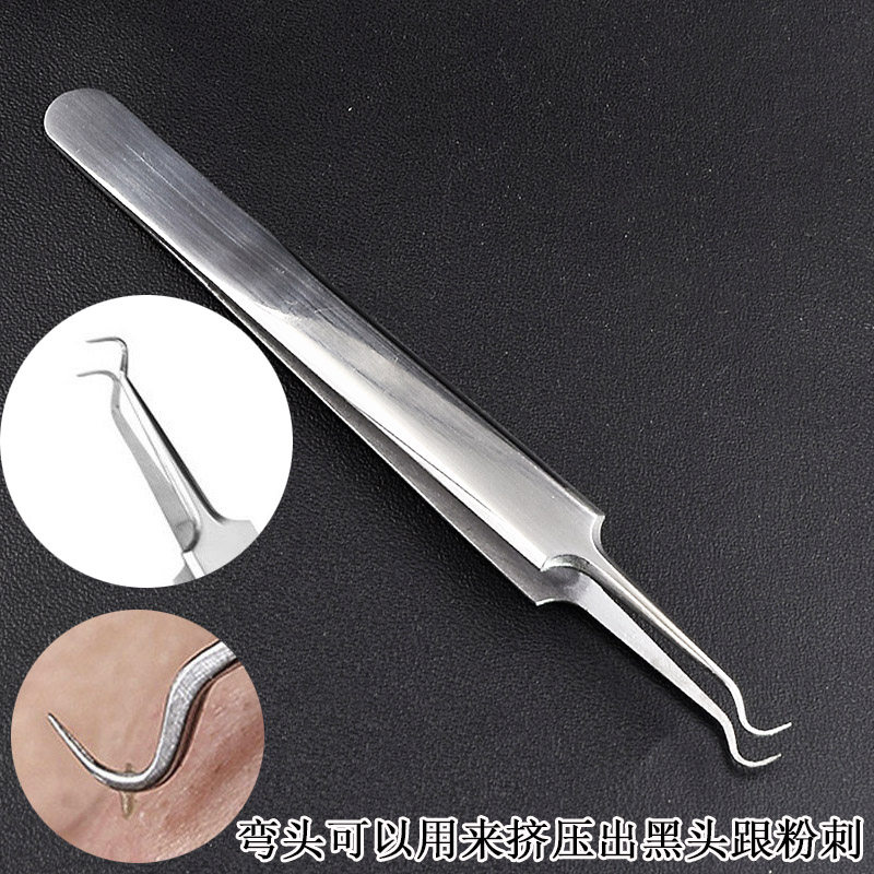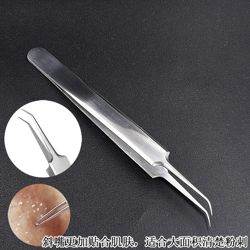 Blackhead extraction Silver oblique mouth clip Oblique mouth clip Storage box 10 pieces of alcohol cotton to pull out blackheads