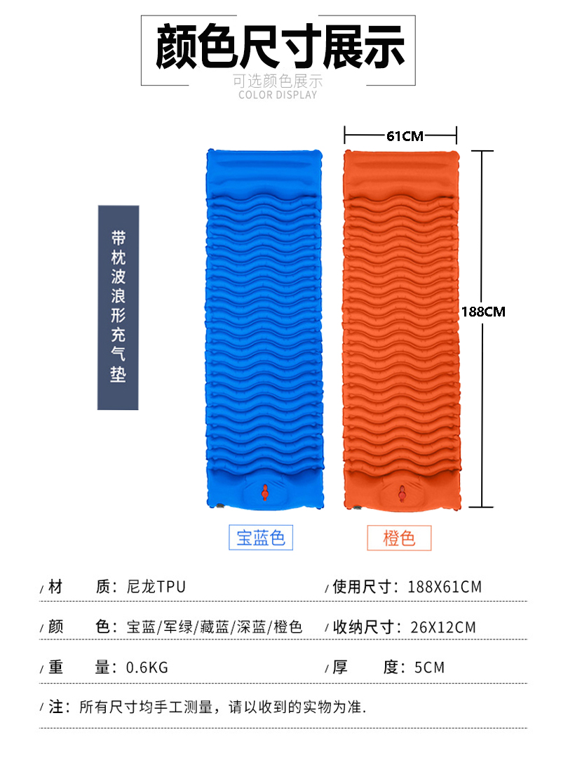 Wave-shaped foot on inflatable pad (treasure blue) Wave-shaped foot stepped on inflatable pad (military green) Wave-shaped foot stepped on inflatable pad (hidden blue) Wave-shaped foot stepped on (orange) inflatable pad (pad)