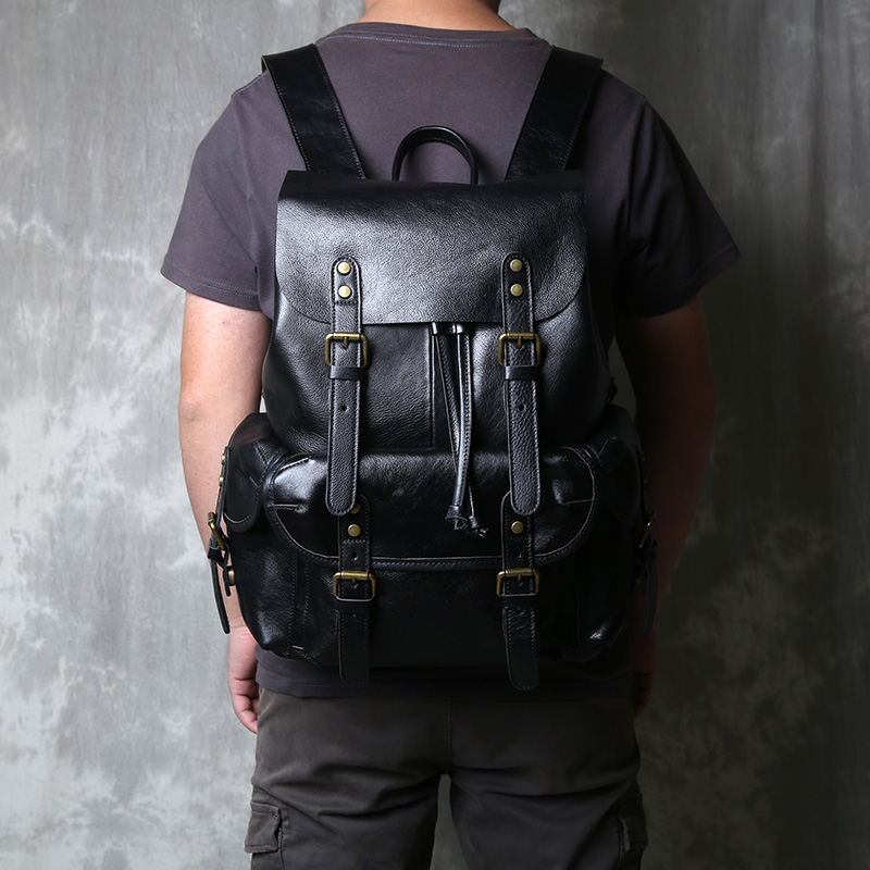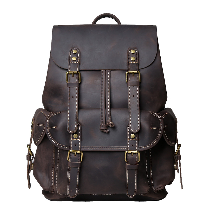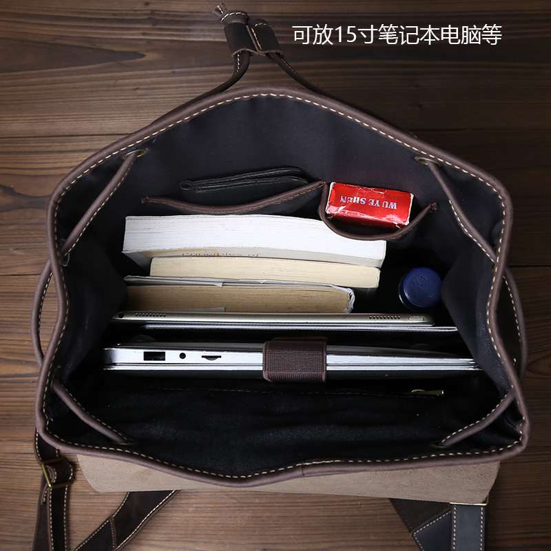 British style men's crazy horse leather backpack retro top layer cowhide backpack simple drawstring genuine leather computer backpack trendy
