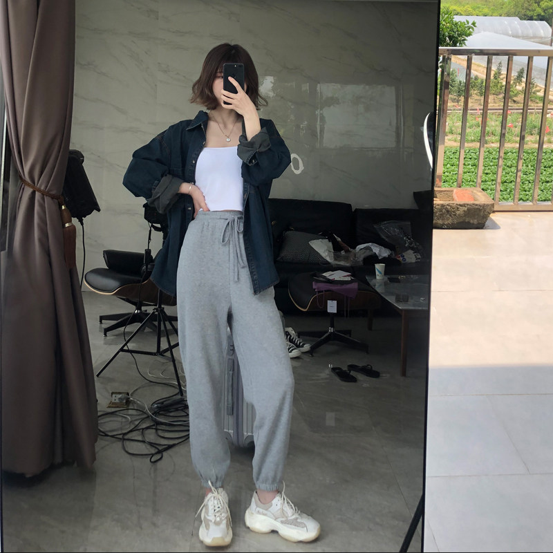 Grey Sportpants Women Loose Bunches Pants Children 2020 New Casual Pants Women Slim 100 Hitch 90% Light Cage Pants