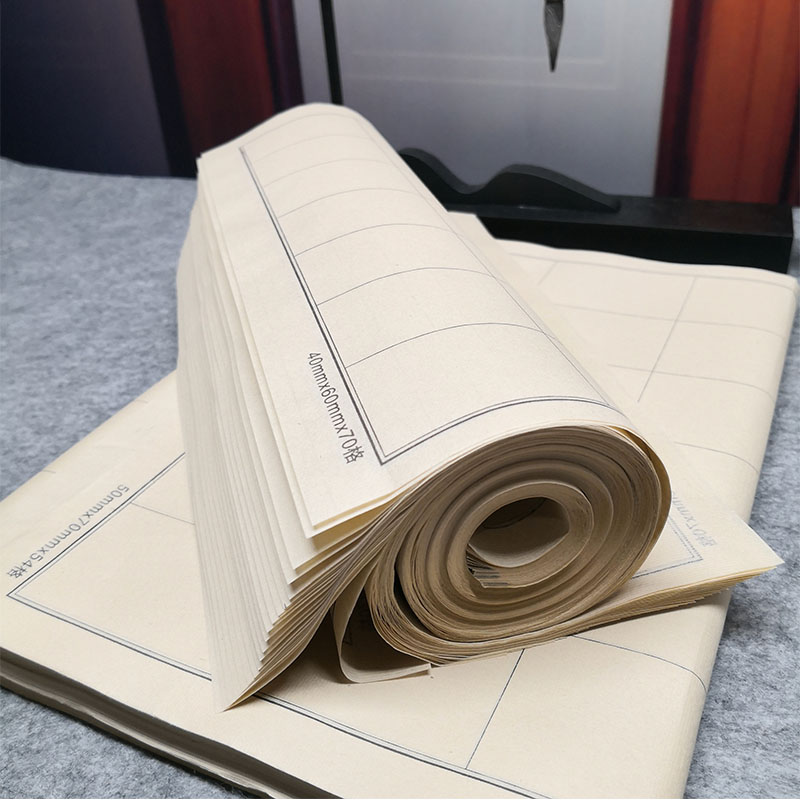Seal of seal Book of books Plaid Checkered Panes Day Class Paper Half Raw Half Cooked Retro Calligraphy Practice Works Rectangular Green Bamboo Paper