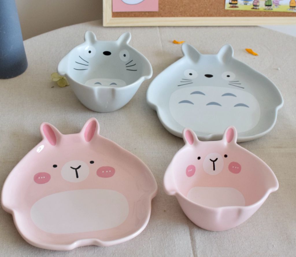 Dragon cat bowls a rabbit bowl a dragon cat plate a rabbit tray a dragon cat bowl set a rabbit bowl set a set of dragon cat set of a rabbit set without a spoon to pay attention to a bowl flaw