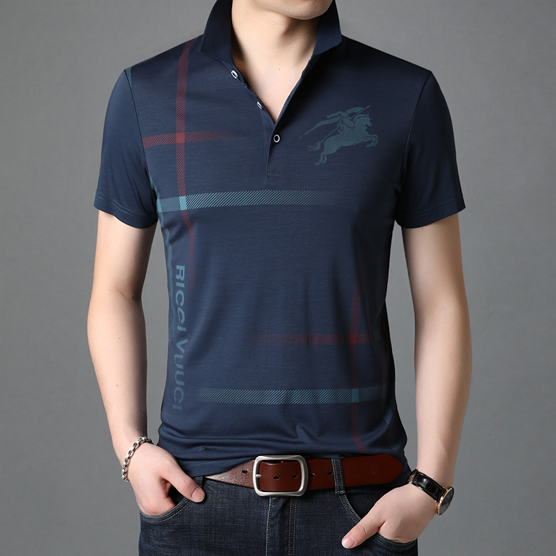 2022 Summer Ice Silk Short Sleeve Men T-Shirt Business Casual Men Turnover Polo Shirts Polo Shirts Men's Half Sleeve T-shirt Blouse