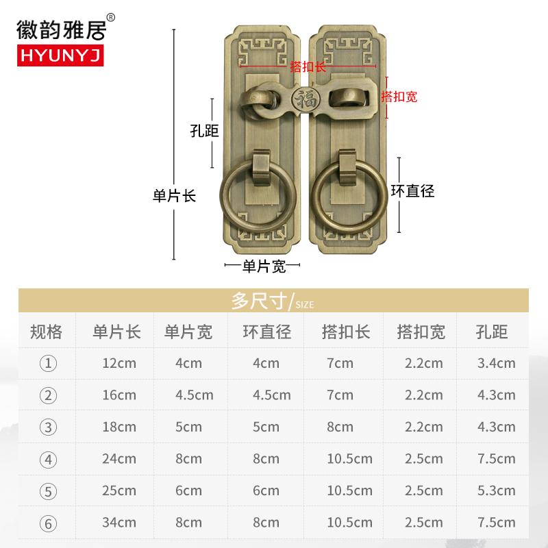 Chinese style retro door handle Old-fashioned solid wood door copper accessories handle Brass buckle Antique cabinet door pure copper door knocker