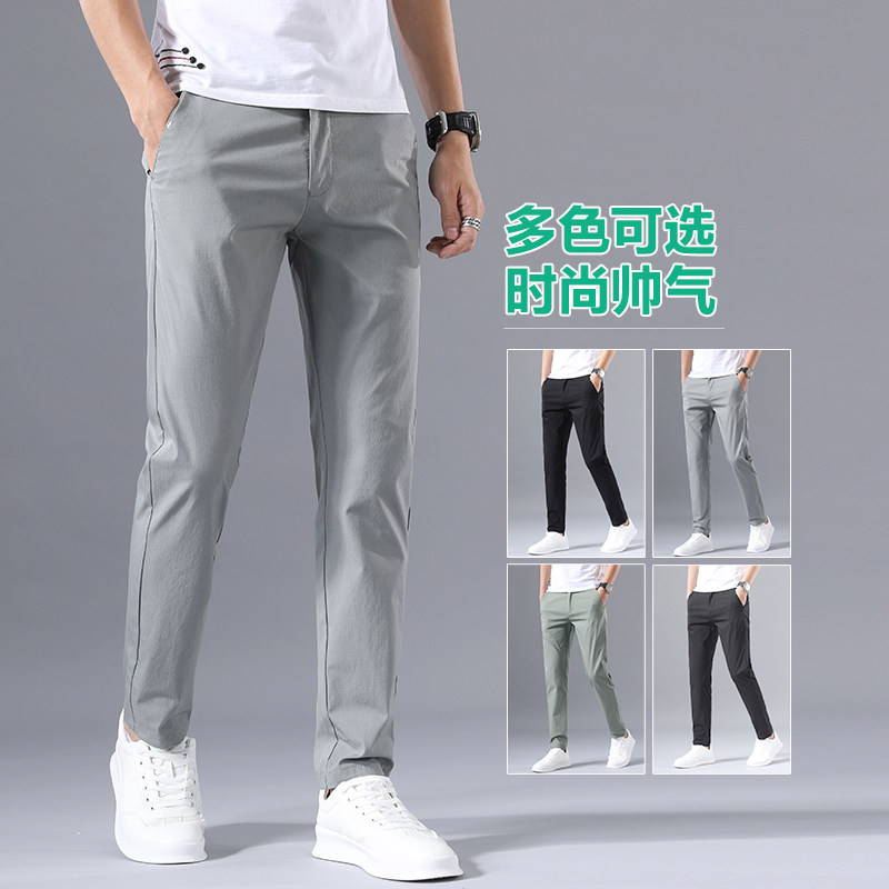 Men Casual Pants Summer Slim Fit Straight Drum Summer Western Pants Long Pants West Pants 100 Hitch Business Pants Men's Clothing
