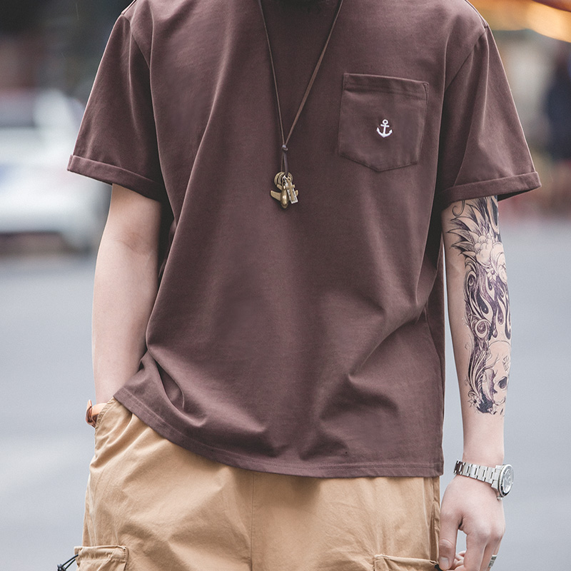 Madden workwear Japanese vintage embroidered boat anchor short sleeve pocket Ami Kazuki American casual loose T-shirt men's summer