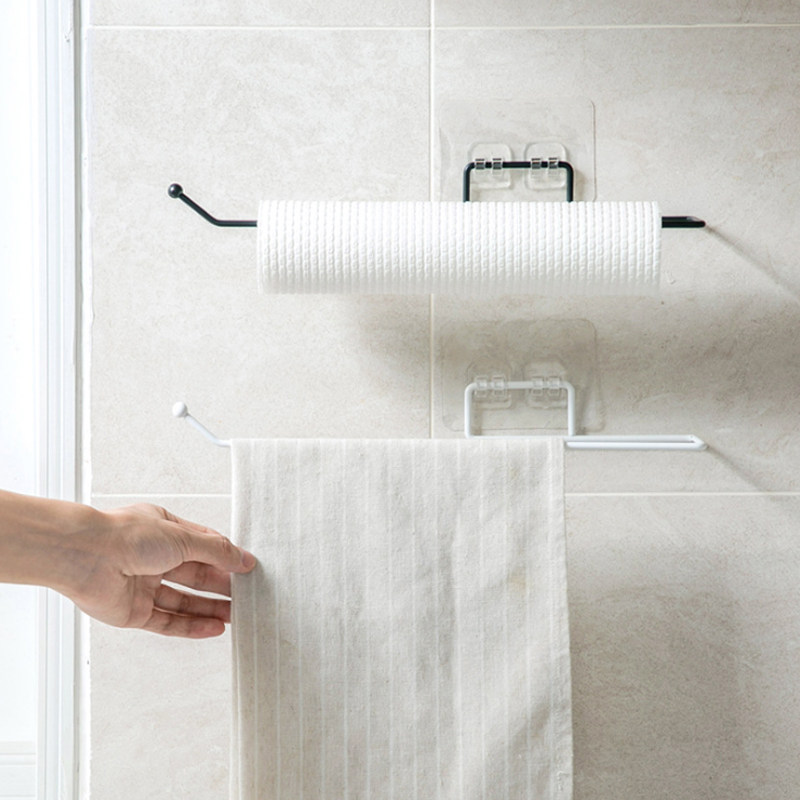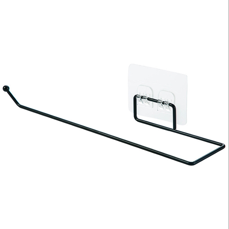 Traceless wall-mounted kitchen paper towel storage rack ironwork paper roll holder hole-free plastic wrap shelf storage rack