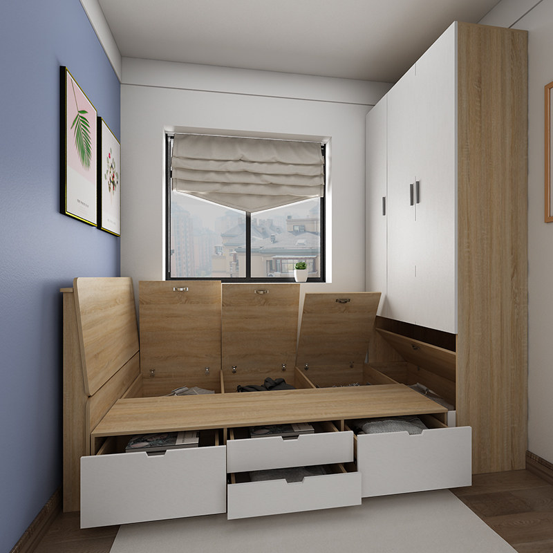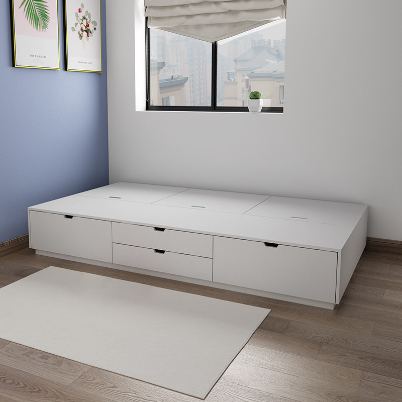 Modern simple custom storage bed bedroom furniture tatami bed small apartment stepping rice storage high box drawer bed