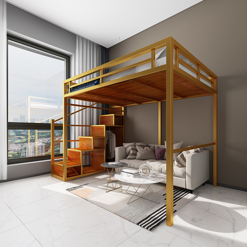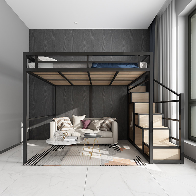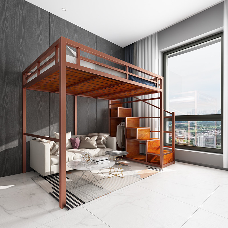 Iron Art High Shelf Bed small family type loft bed Lower table Home Adult Attic Bed Province Space Up And Down Bed-Taobao
