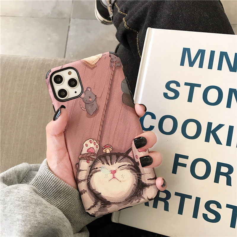 Suitable for apple 11 pro max mobile phone protective shell cartoon illustration cat iphone11pro all-inclusive anti-fall tide brand