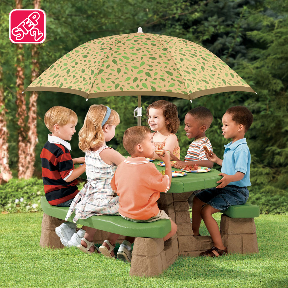 American Step2 Six-person Picnic Outdoor Umbrella Table And Chairs Suit Children Furniture With Umbrella Table Game Baby Home-Taobao