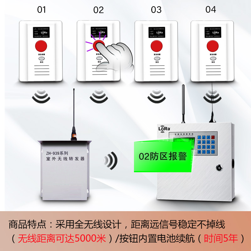 Wireless emergency button Wireless alarm host Wireless repeater LED screen plus serial port module (used with the host) lora wireless long-distance infrared