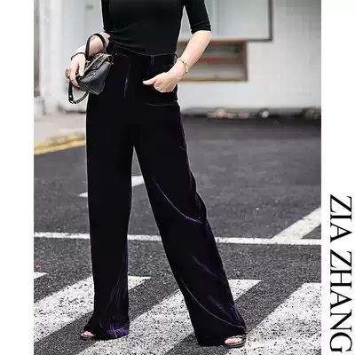 Z boss's light and elegant silk velvet trousers European and American straight casual pants women