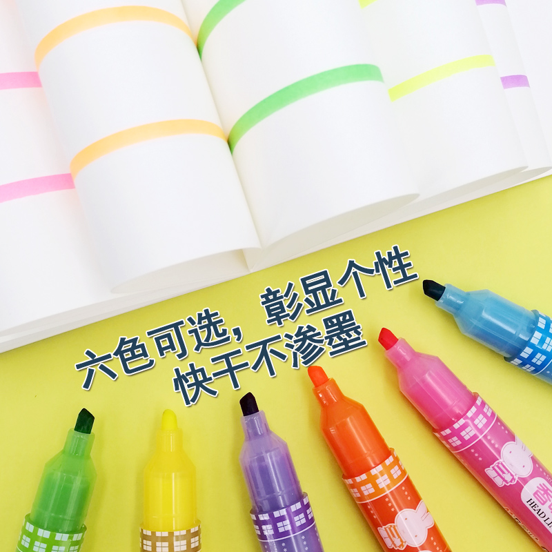 Morning light highlighter marker pen pale color system Miffy scented beveled head student with a single marker pen color thick stroke key small artifact large capacity to make notes obsessive-compulsive pen stationery set