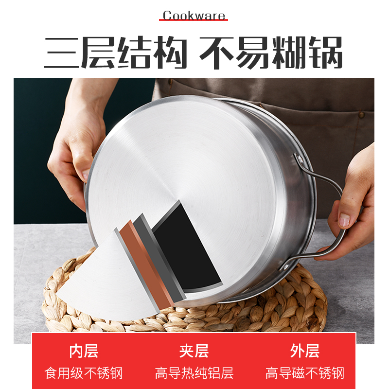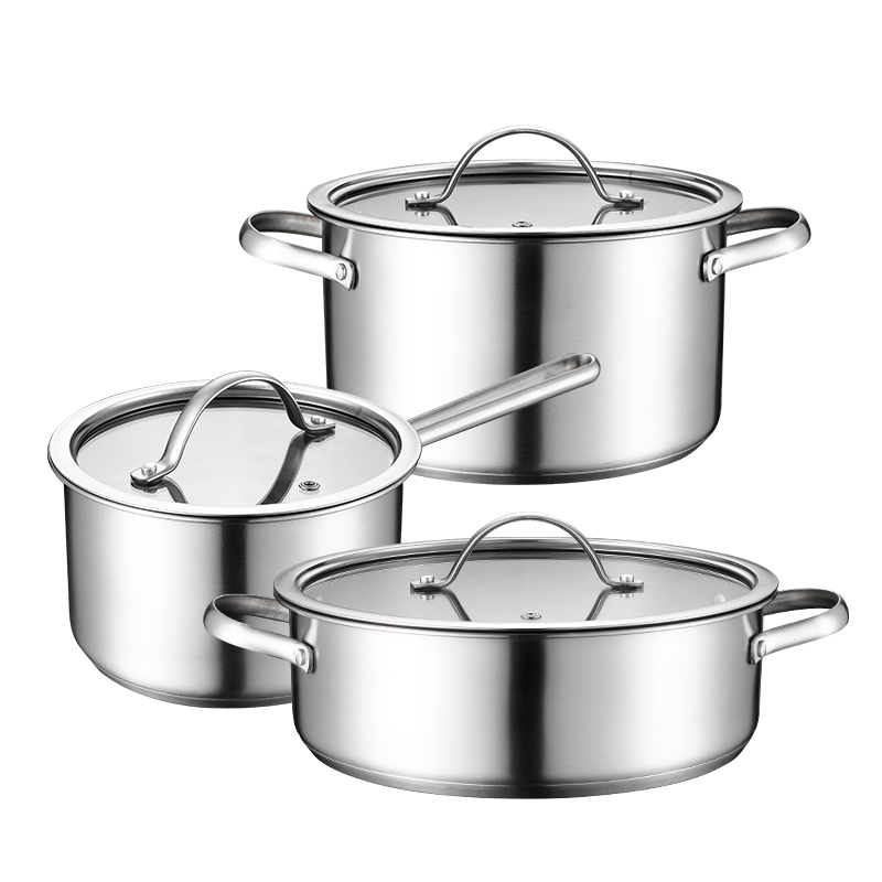 304 Three-piece full set of pots 304 Three-piece full set of pots with brown lids 304 Milk pot 304 Soup pot 304 Hot pot
