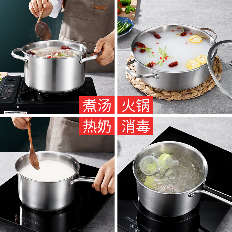 Stainless steel milk pot 304 thickened German pan set three-piece set household induction cooker pot combination without coating