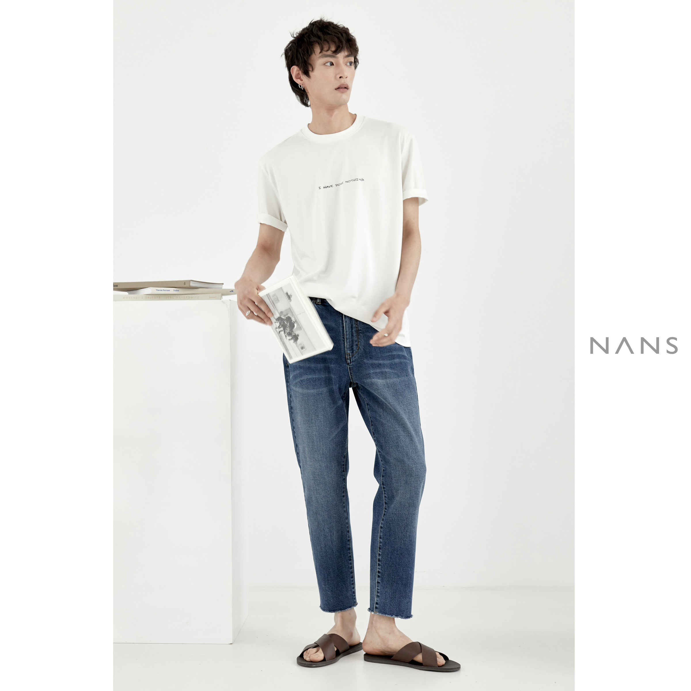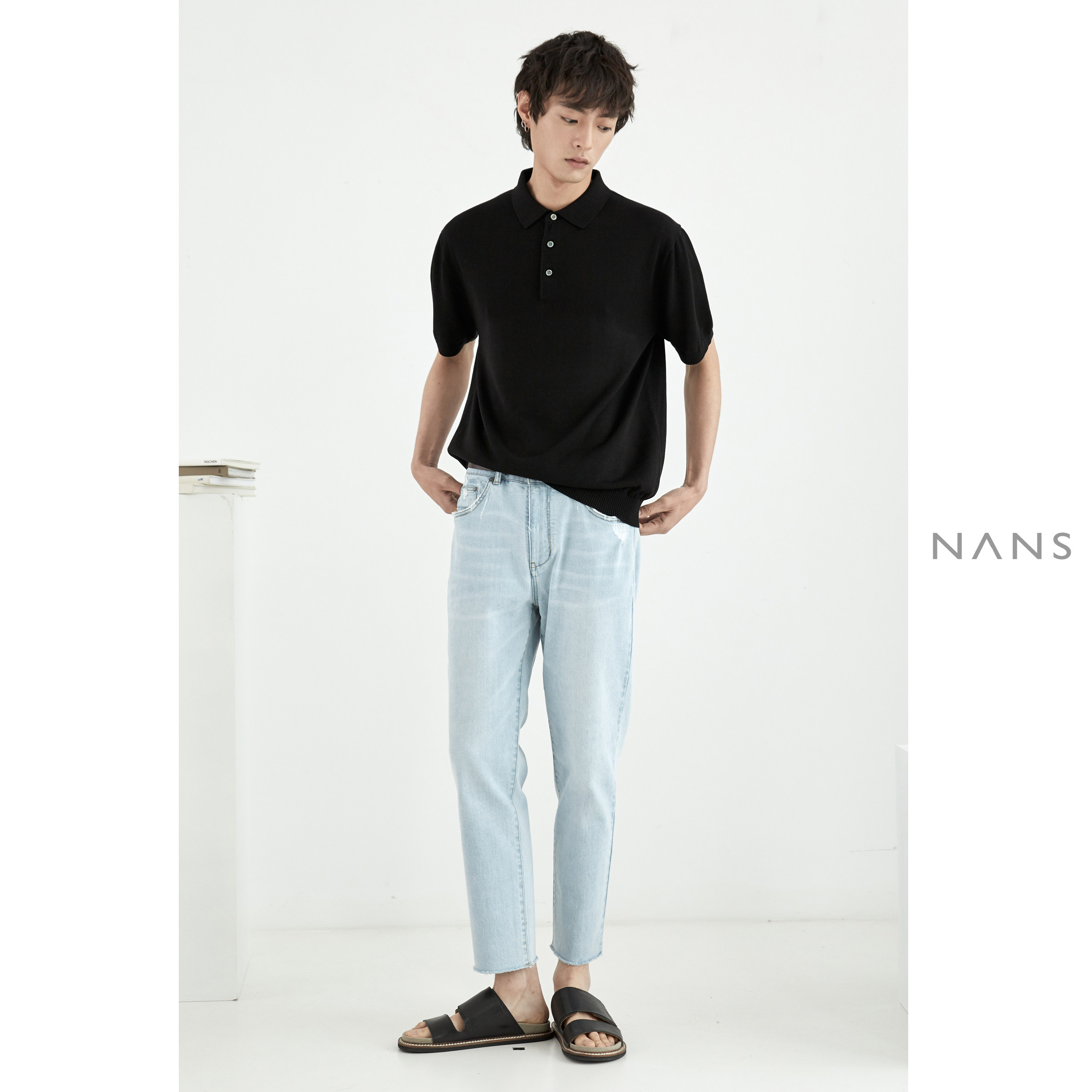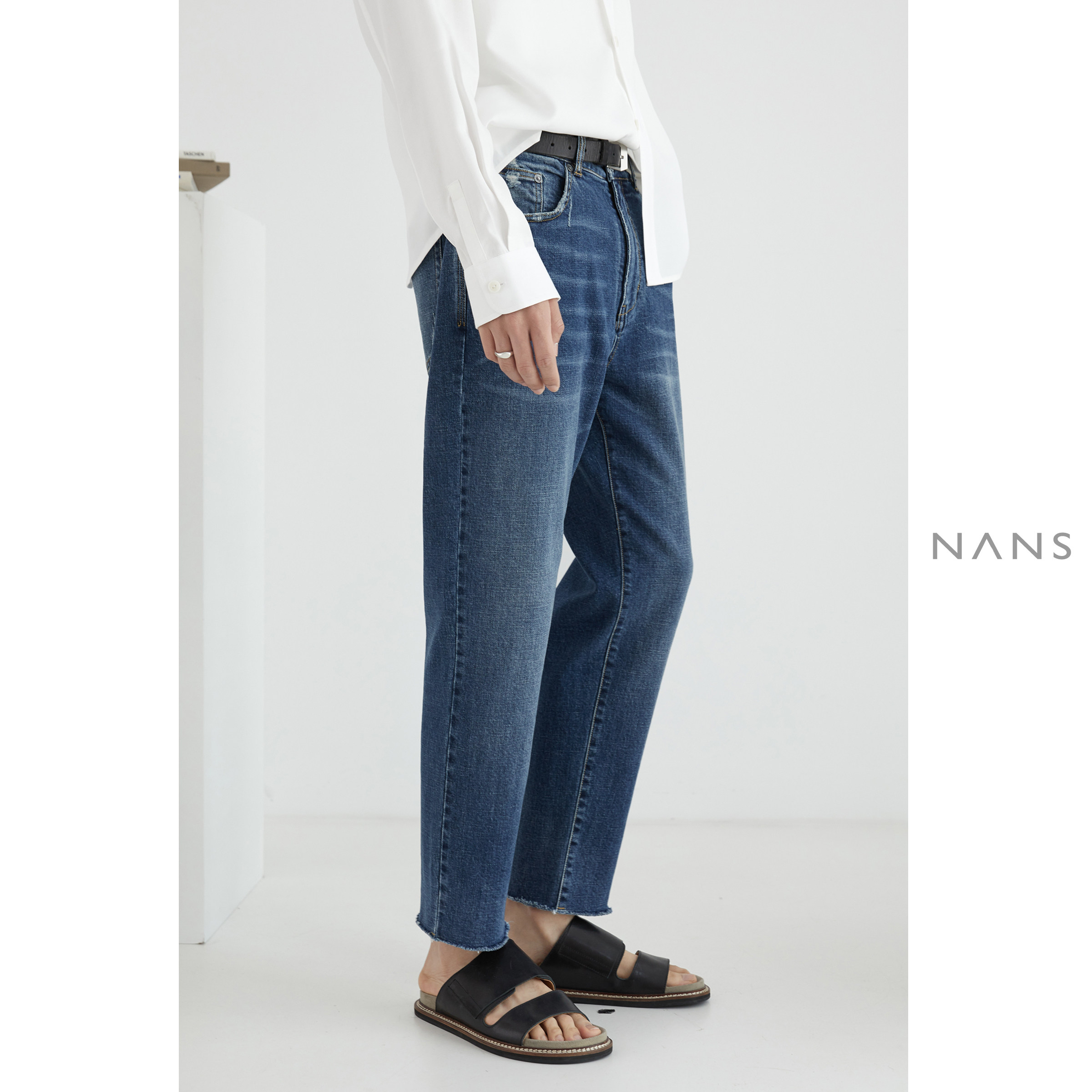 (NANS) light damage footed hair side elastic light pound jeans 90% pants ANKLE-LENGTH JEANS