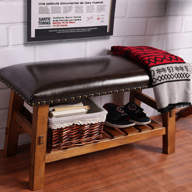 American solid wood changing shoes stool domestic door Shoe cabinet wearing shoes stool Nordic modern entrance door stool sofa stool containing shoe rack