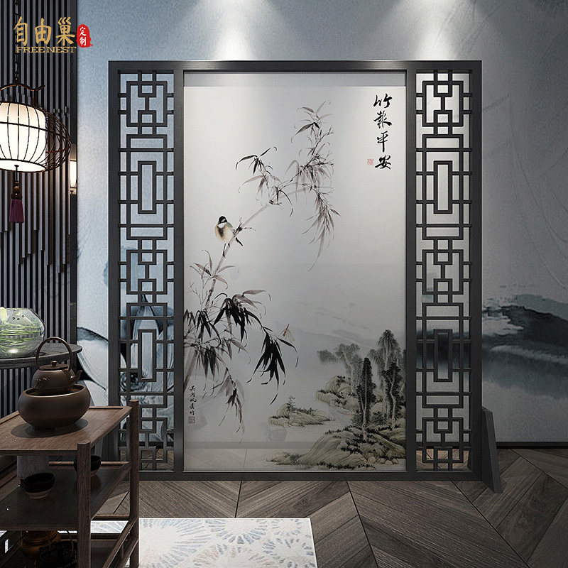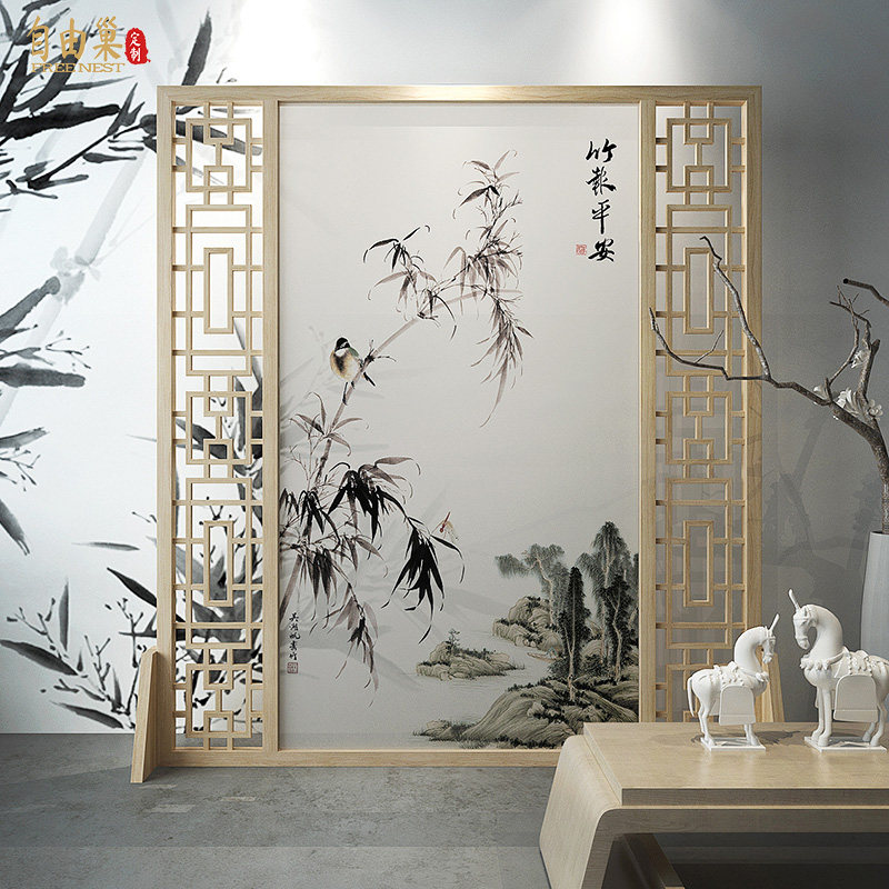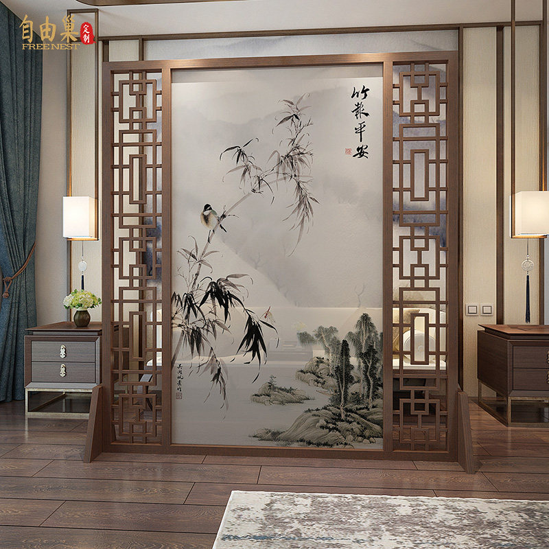 New Chinese fence screen partition living room entrance villa solid wood custom hollow hotel bamboo grille large seat screen
