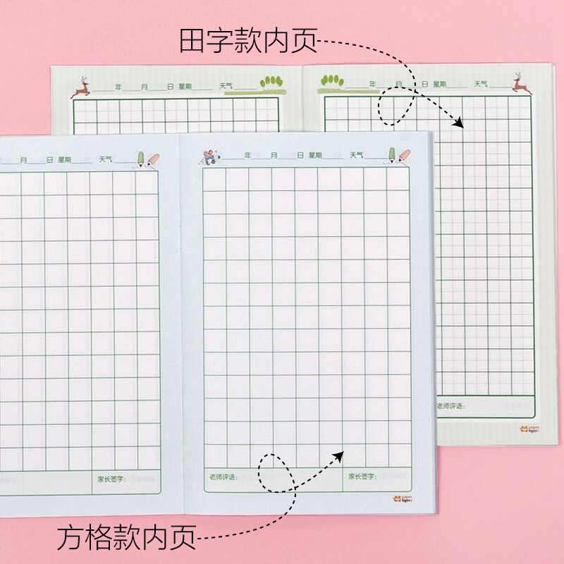 Primary school students' diary for the first and second grades thickened Tianzi grid large square book comment cartoon cute children's daily writing weekly note homework book third grade writing text writing diary special book