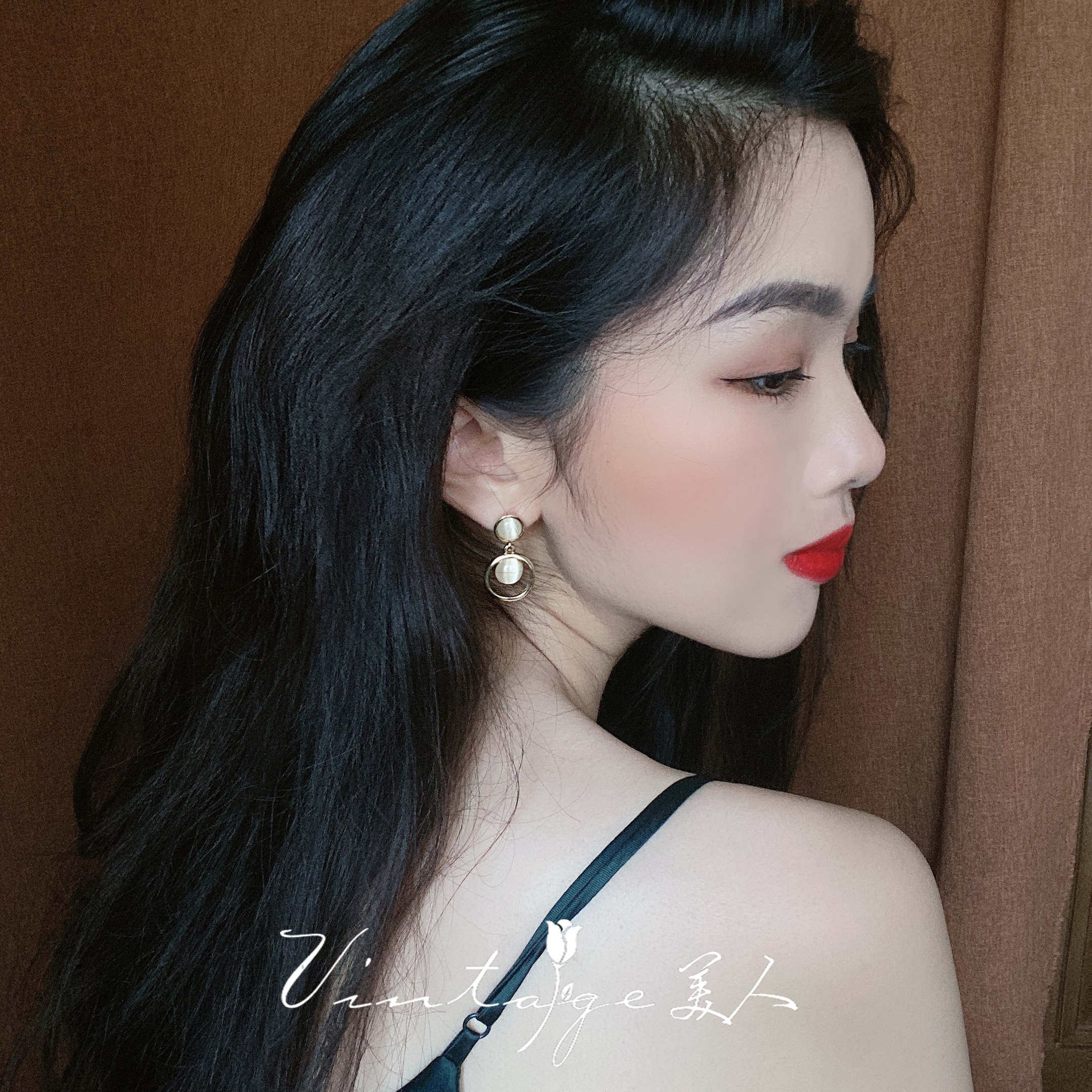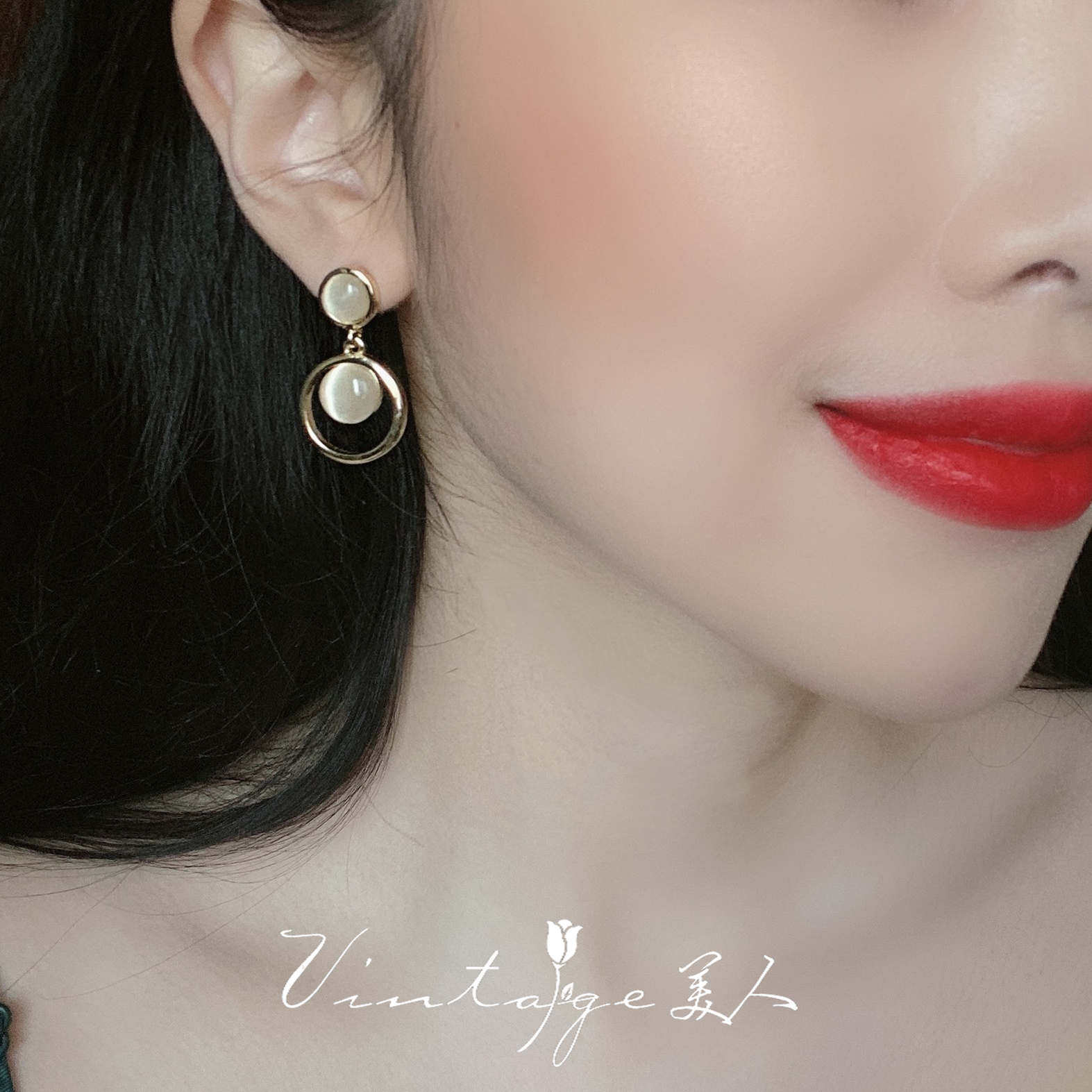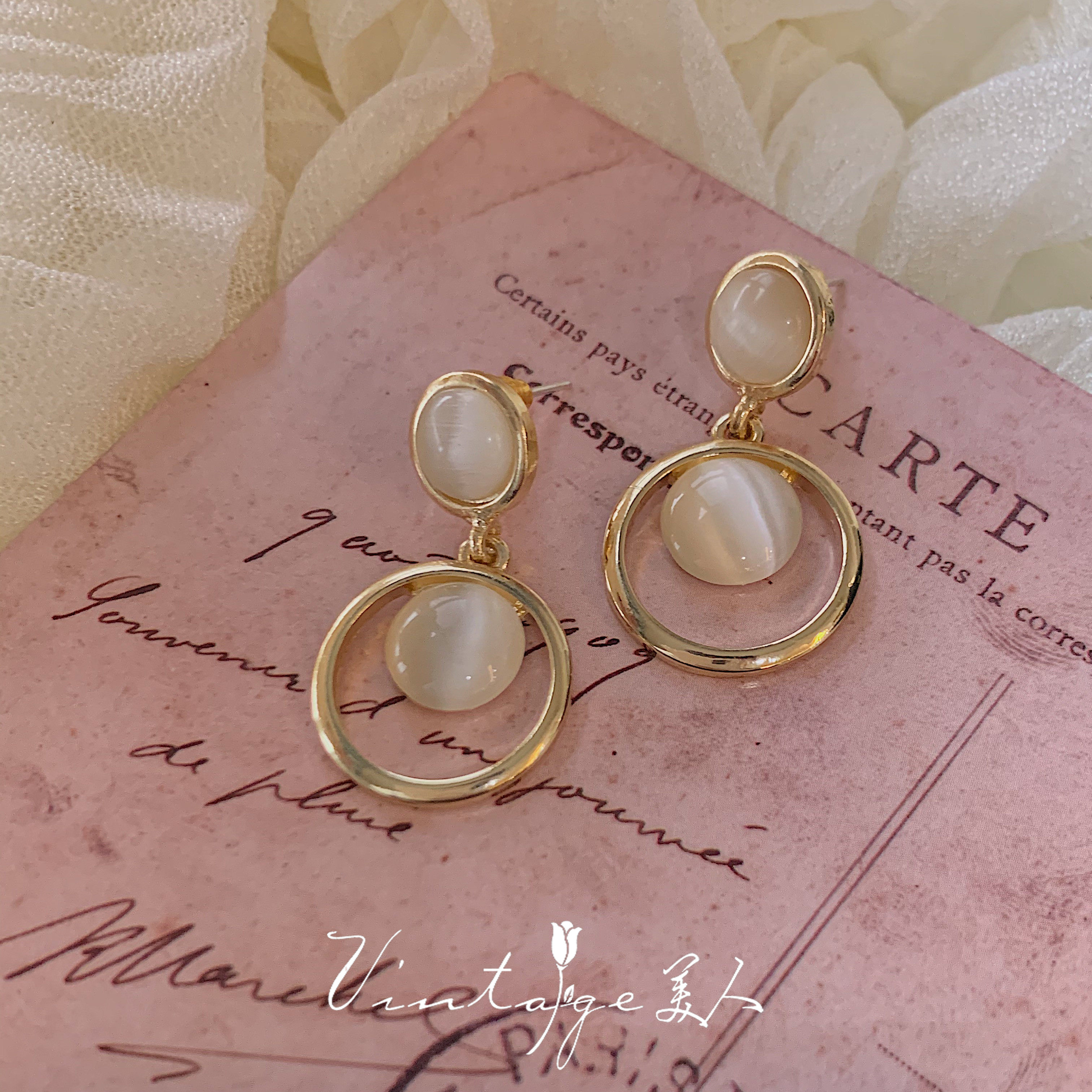 "Moonlight Serenade" soft light overflowing French court elegant Hong Kong style opal earrings ear clips