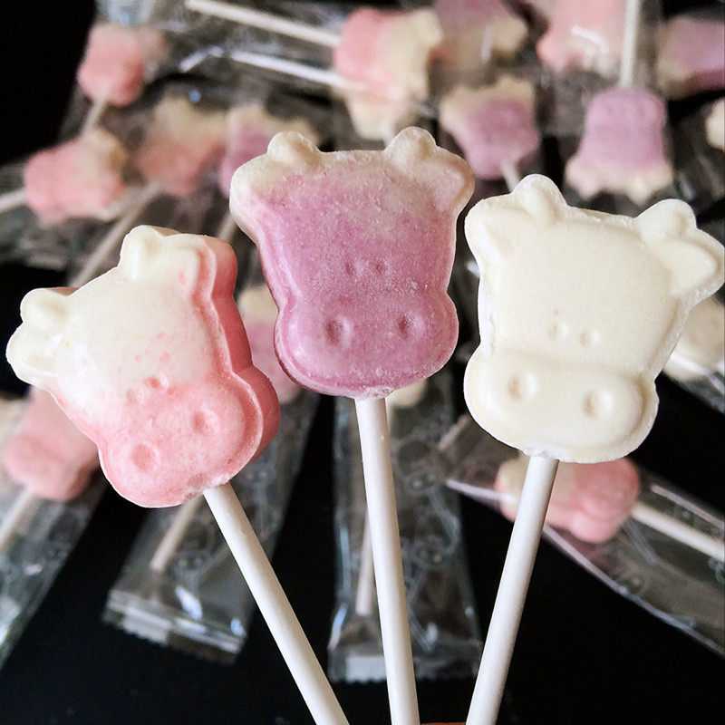 Baby cow's head milk lollipop creative cute children's milk piece net red lollipop candy 3 flavors comprehensive pack about 68 pieces