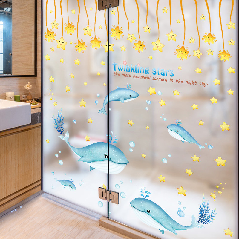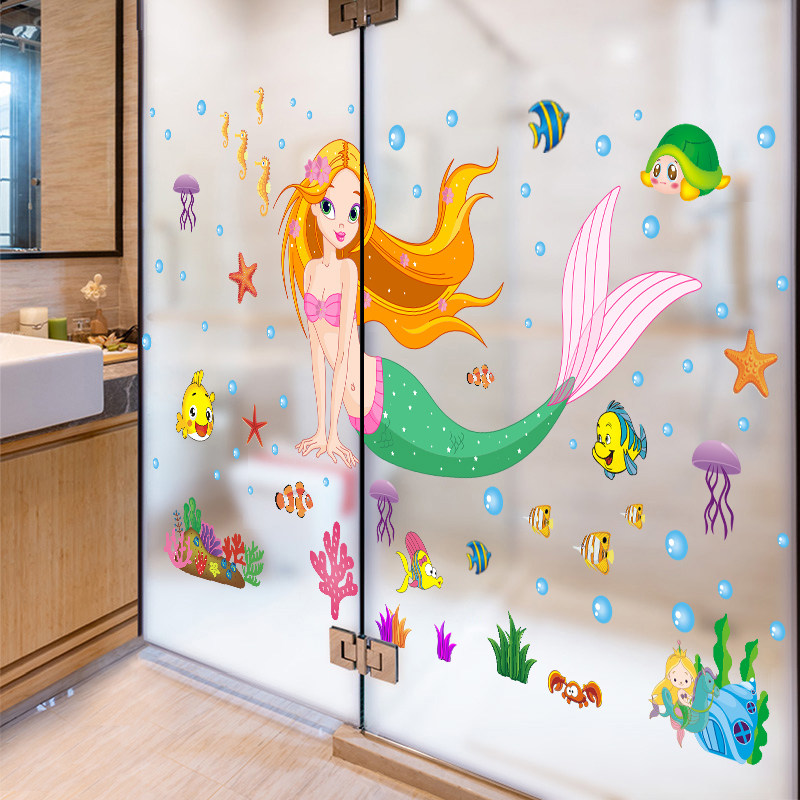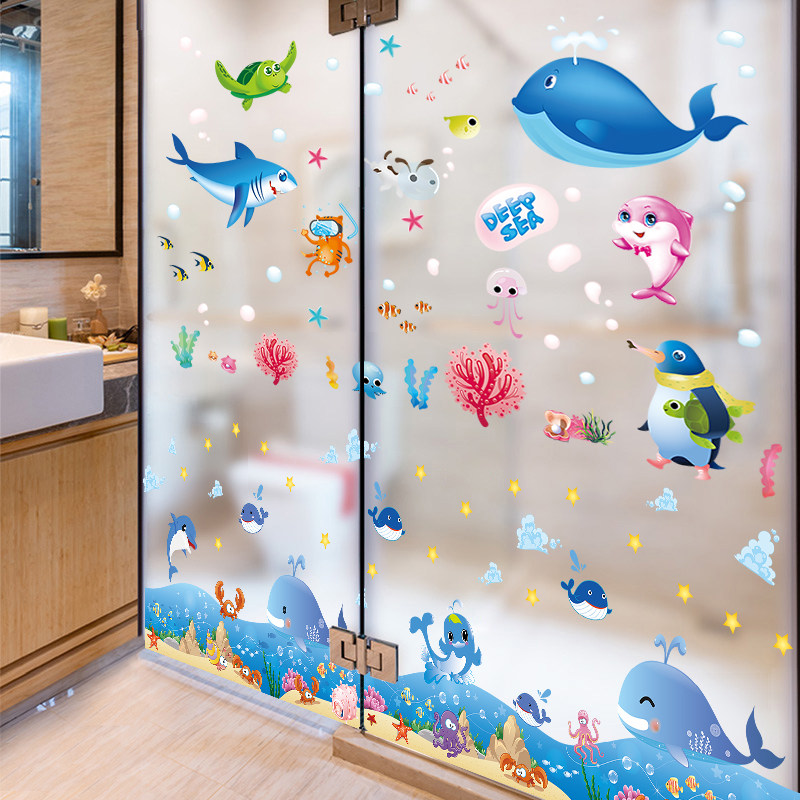 Makeup Room Bathroom Tiles Waterproof Sticker wall stickers 3D Solid children Cartoon Marine fish Toilet Glass Door Stickers