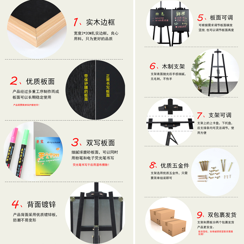 Wooden blackboard bracket type vertical magnetic small blackboard chalk writing magnetic green board shop hanging fluorescent handwritten billboard display board menu advertising blackboard wood frame writing board whiteboard