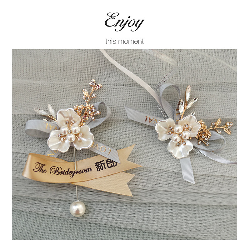 The same wrist flower An uncalled brooch with a bridal brooch with a bridal brooch with a bridesmaid chest and a brooch with a mother-in-law, a mother-in-law, a mother brooch with a father's chest and a father's chest.
