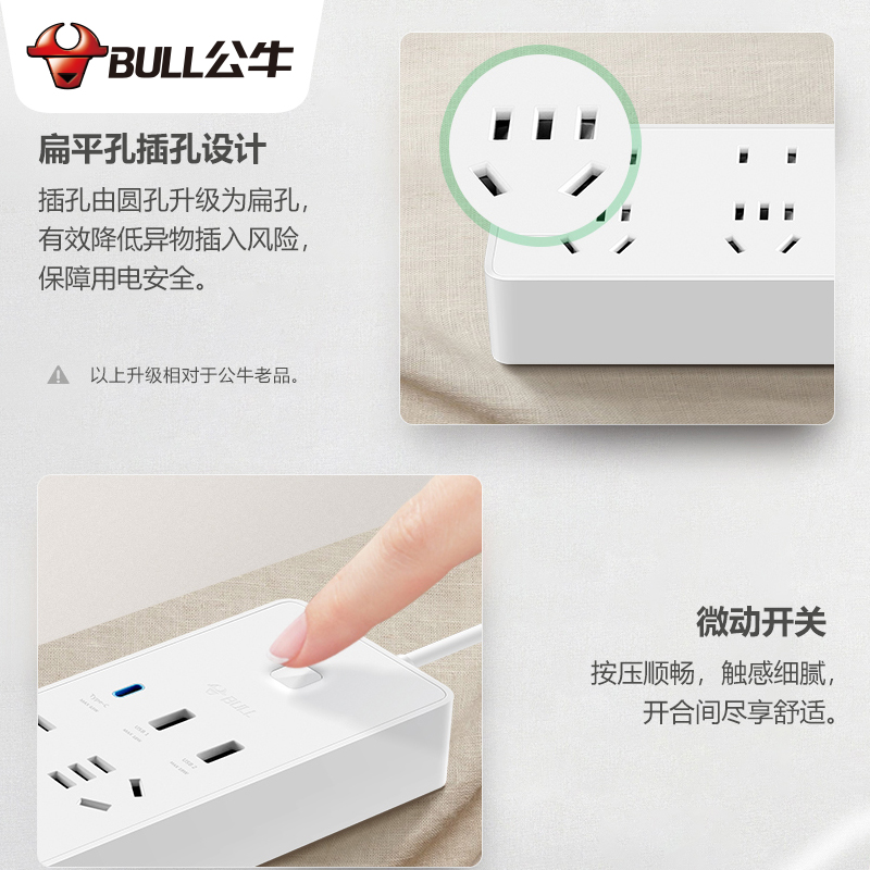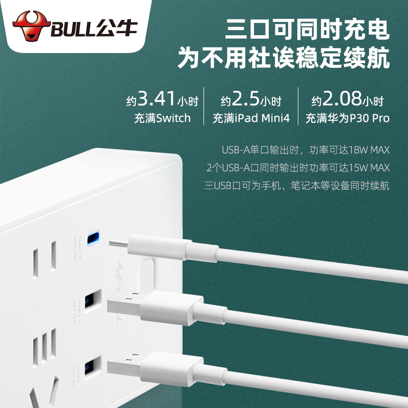 Bull Fast-charging Plug-in Mobile Phone Charger Quick Charge Universal Typec Multi-Head Data Wire Socket USB Power Extension Cord Multifunction Plugboard With Wire Intelligent Laptop Computer Desk Face Platoon Plug