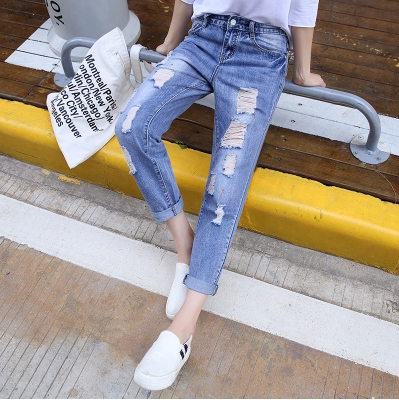 Korean tide brand 2020 new summer light-colored ripped jeans women's nine points casual harem straight beggar pants tide