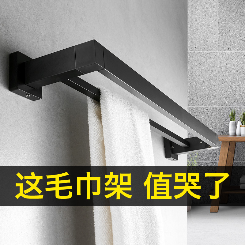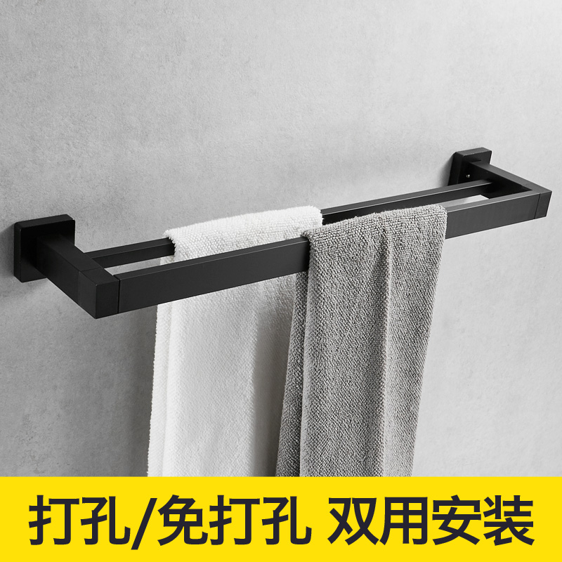 Towel bar Double pole towel rack punch-free space aluminum towel rack Bath towel rack nail-free hanging rod pylons Nordic