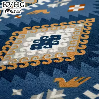 KVHG Mediterranean bedroom carpet living room Large Area blue tea table blanket machine washable block blanket bedside household floor mat