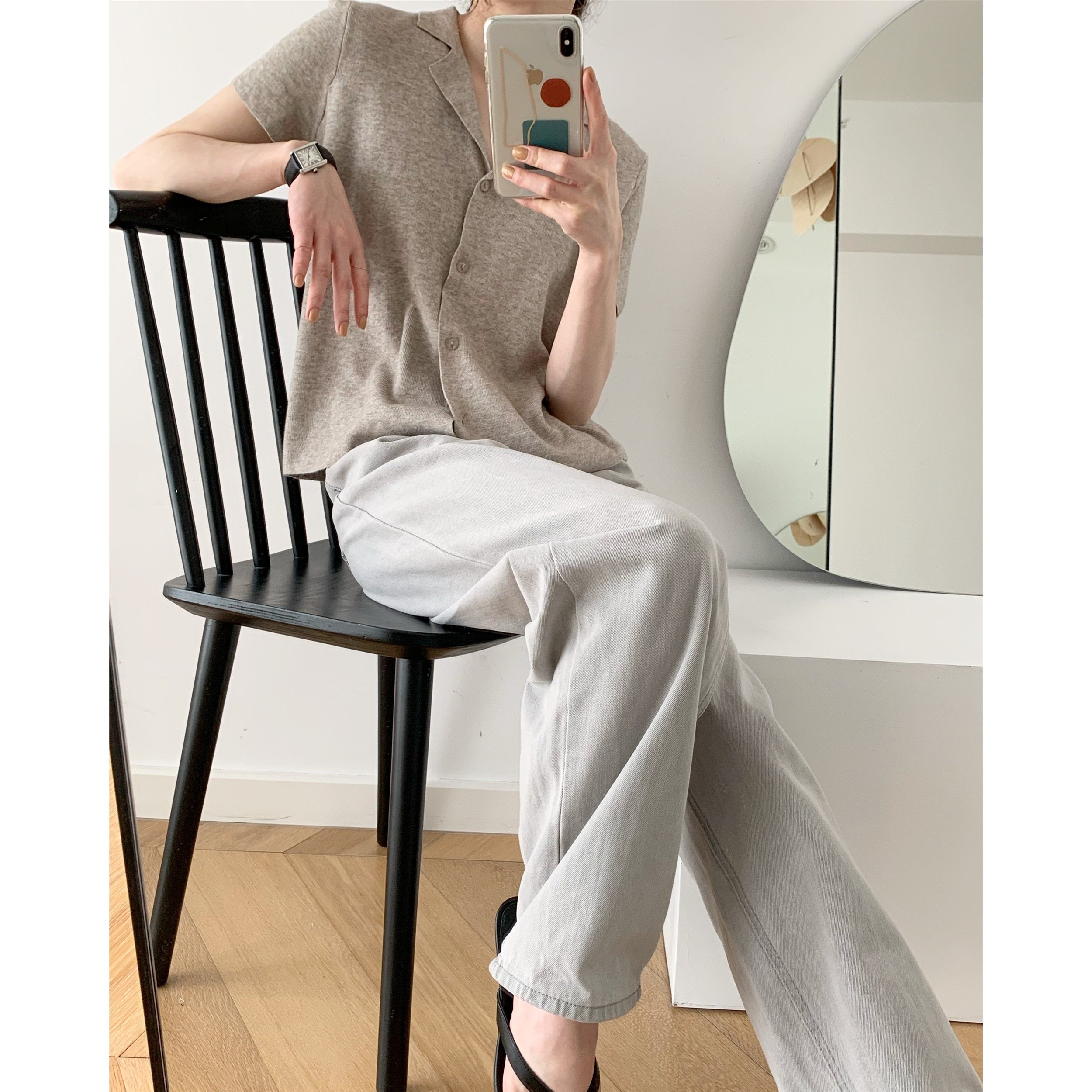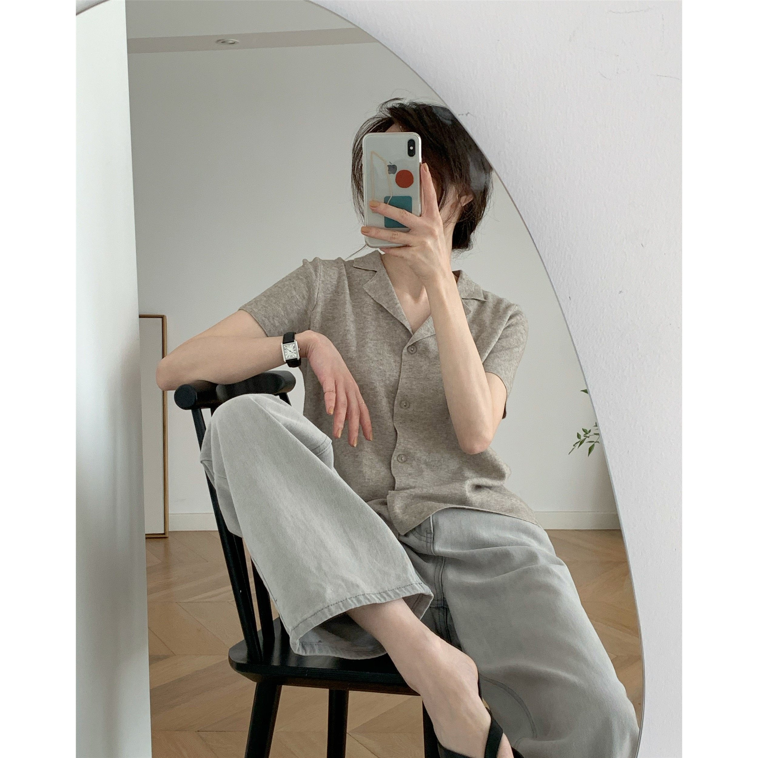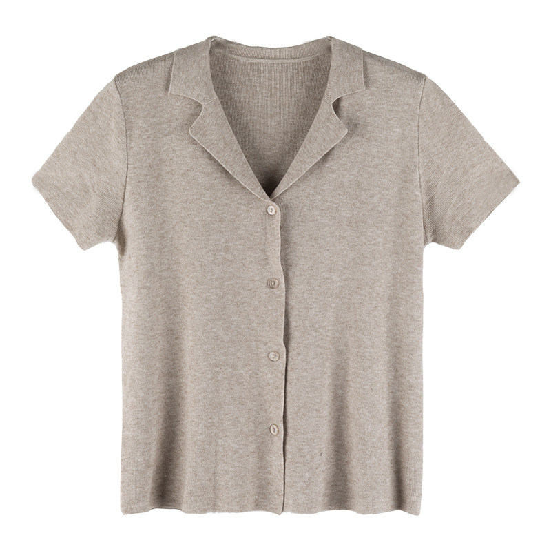 ICTS gentle and ungreasy just good milk curry retro feel suit small flap with slim and short sleeve-knit cardigan