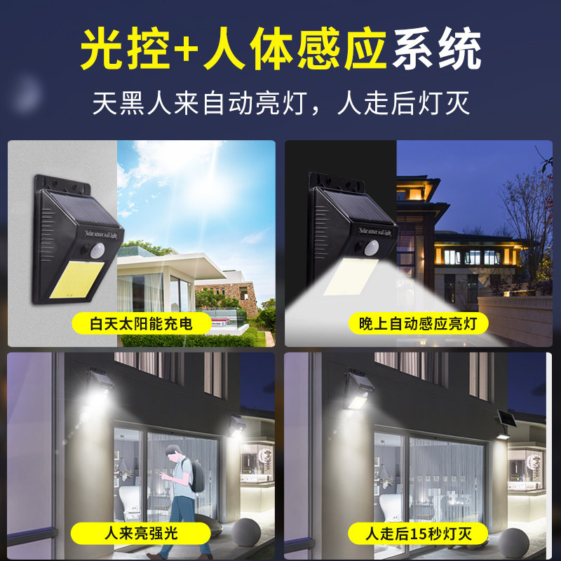 20LED (light-controlled dark and always bright) 30LED (light-controlled human body induction) illuminates about 25 square meters 48COB (light-controlled human body induction) 40LED (light-controlled human body induction)
