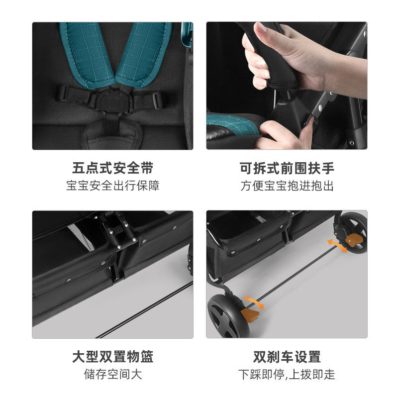 Shenma twin baby trolley second child baby dragon and phoenix tire light can sit and lie child child double stroller