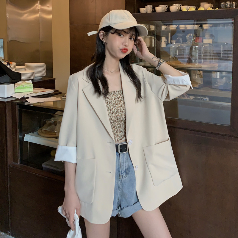Suit jacket Women's thin section 2022 Spring new Korean version loose with slim 70% sleeves Long version casual little Western suit
