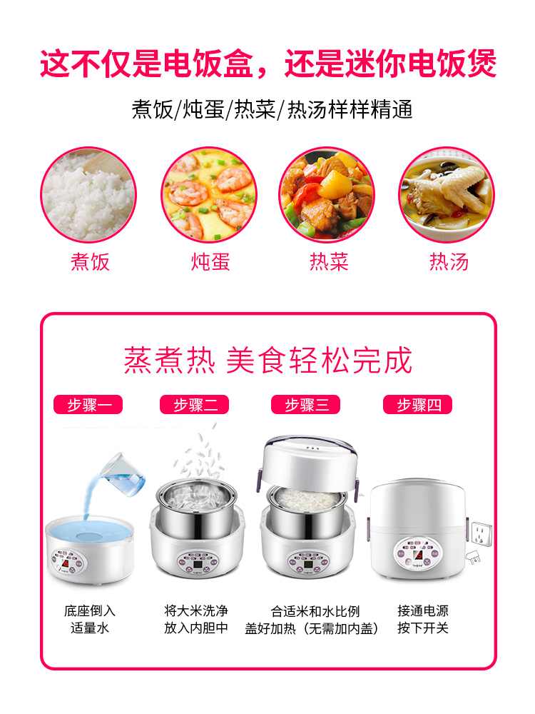 Uyi insulation plug-in electric heating lunch box office worker portable 2l liter food grade 304 stainless steel cooking rice bucket 1 person